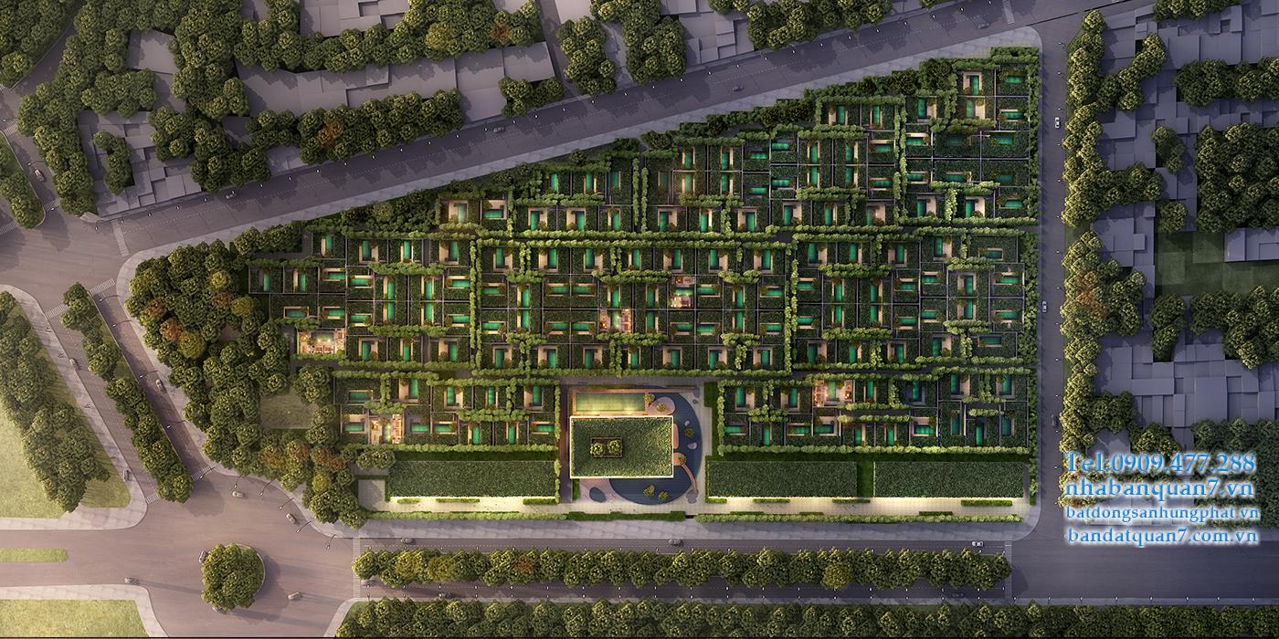 Quy mô: 74,727m2, mật độ xây dựng: 35%, mật độ cây xanh và giao thông tiện tích 38%