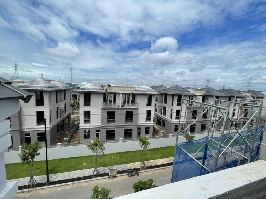 Các căn nhà phố thương mại shophouse đã thành tất cả phần móng, Một số căn đã cất nóc và đang hoàn thiện xong mặt ngoài: sơn tường, dán đá bóng kiếng, gạch men, cửa chính cửa sổ, đang được thi công và đang thi công trần nhà.